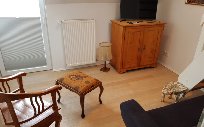In den 3 Schlafzimmern mit 2 Doppelbetten und einem Einzelbett können bis zu 5 Personen übernachten. Platz zum Arbeiten finden Sie auch im Dachgeschoss mit Ausblick zum Schildbergturm.
